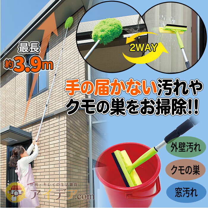 高いところのお掃除&クモの巣除去やFIX窓のお掃除にも 伸びる2Wayロングモップ 高い場所のお掃除って、手が届かないからとそのままになっていませんか? でも、大切なお家だから外観もきれいにしておきたいですよね!簡単にお掃除できる方法をご紹介♪