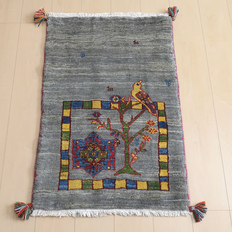 マット 約45×75cm グレー ギャッベ ウール100% ラグ GABBEH A6 ホットカーペット対応 床暖房対応 インド産 手織り (代引不可)(メーカー直送)(ラッピング不可)