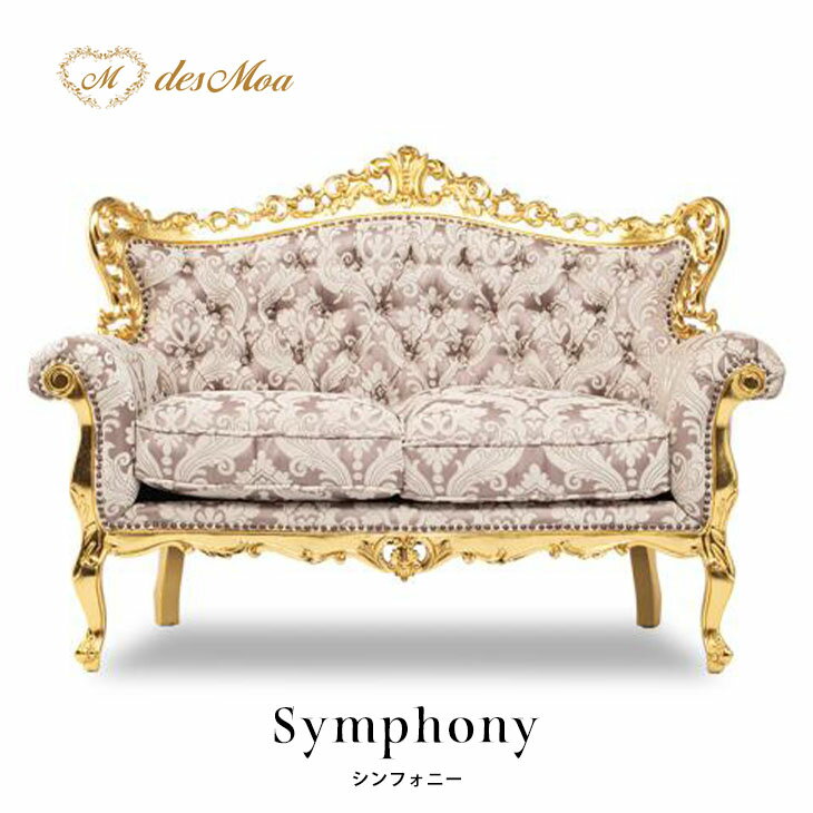 Symphony シンフォニーシリーズ 2人掛けソファ 2シート ソファー アンティーク調 彫刻 猫脚 クラシカル ラグジュアリー エレガント 店舗什器 撮影什器 ホテル カフェ ロビー ラウンジ 書斎 応接室 ヨーロピアン 箔フレーム 布地 ゴールド×ピンクダマスク 1006-2-SH-10F68B