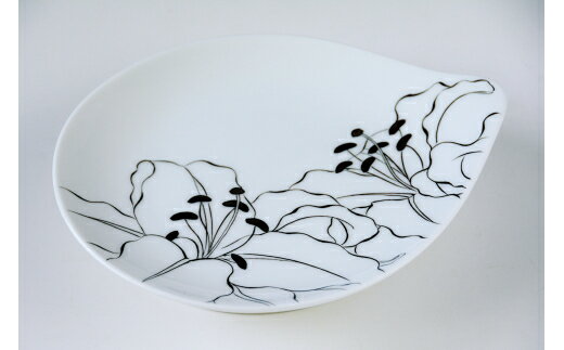 【ふるさと納税】線描きカサブランカ・バラ変形皿(赤・黒選択) H739