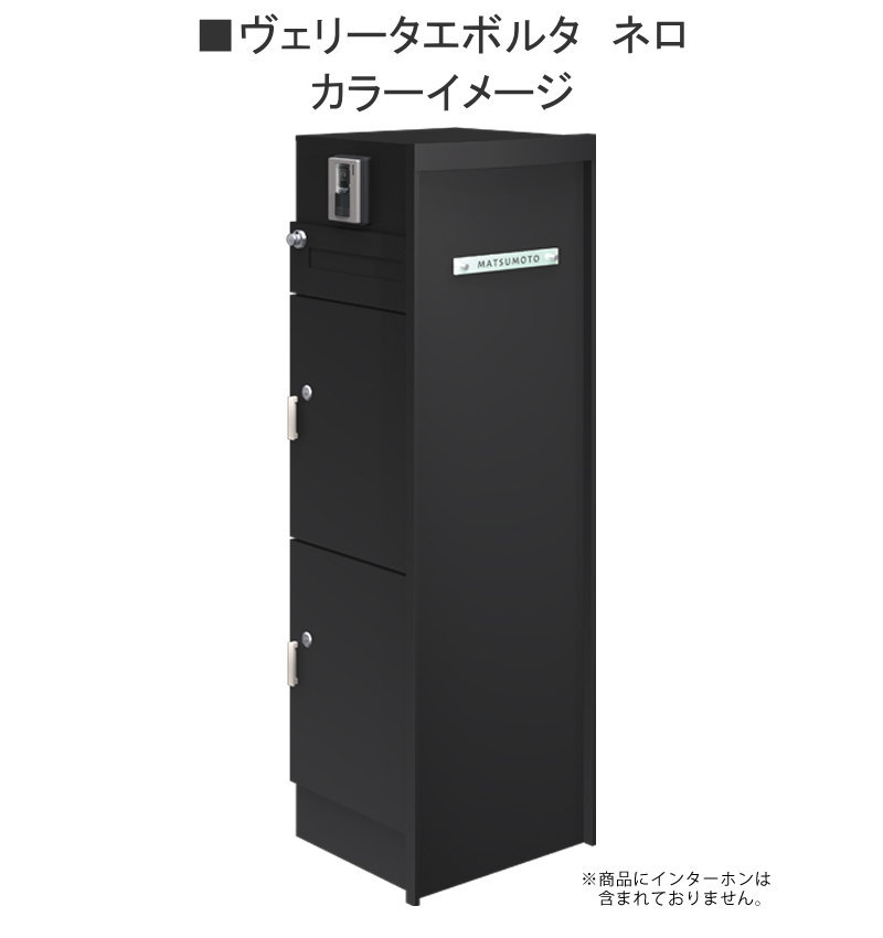 商 品 詳 細商品名【多機能ユニット ヴェリータエボルタ ネロ】 NA1-VBNBM 機能門柱 一戸建て用 一体型サイズ(mm)本体:W450×H1400+埋め込み320×D436 ポスト投函口:W285×H40 点検蓋:W403×H258重量(kg)約47.0kgカラー化粧面:ブラックマット (本体:ブラック)材質[本体]亜鉛メッキ鋼板(仕上:防錆処理+焼付塗装) [額縁装飾部]ステンレス(仕上:焼付塗装) [点検蓋]亜鉛メッキ鋼板(仕上:防錆処理+焼付塗装) [前面パネル]仕上:防錆処理+焼付塗装仕様・ポスト部:ダイヤル錠付き ・ポスト投函口:W285×H40 ・宅配ボックス部:キーシリーンダー錠(錠は共通) ・宅配ボックス部の荷物を受け取りできるサイズ:W330×H450×D350 ・宅配ボックスは内部ロック解除機能付き ・表札付属(詳細は画像の各typeをご確認ください) ・表札灯付属(●AC100V(消費電力3.4W) LED照明 白色 ●1次側電源:現地にて結線) ※素材、サイズ、書体、色の変更不可。